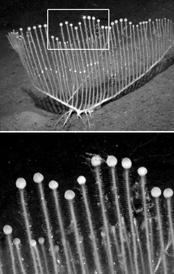 コンドロクラディア・リラを発見した研究チームは、海流と接触する体の表面積を広くして、たくさんの獲物を捕らえるためにこのような特徴的な形に進化したのではないかと推測しています。