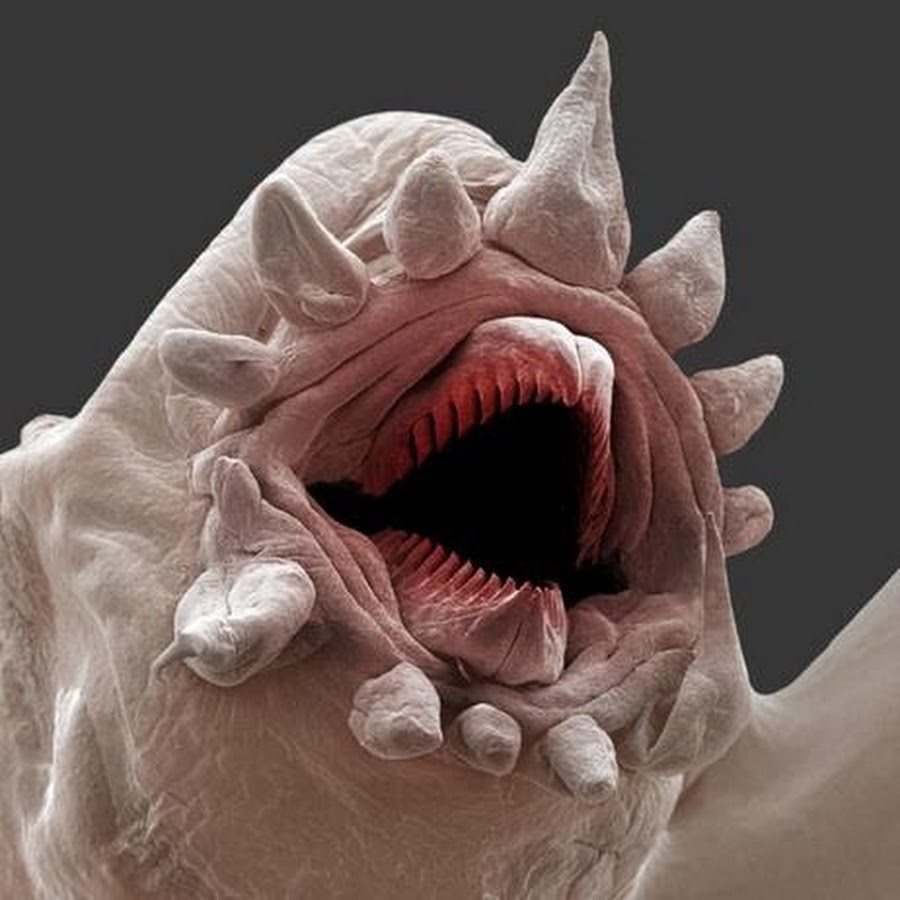 そんなウロコムシの顔を電子顕微鏡で拡大してみると…